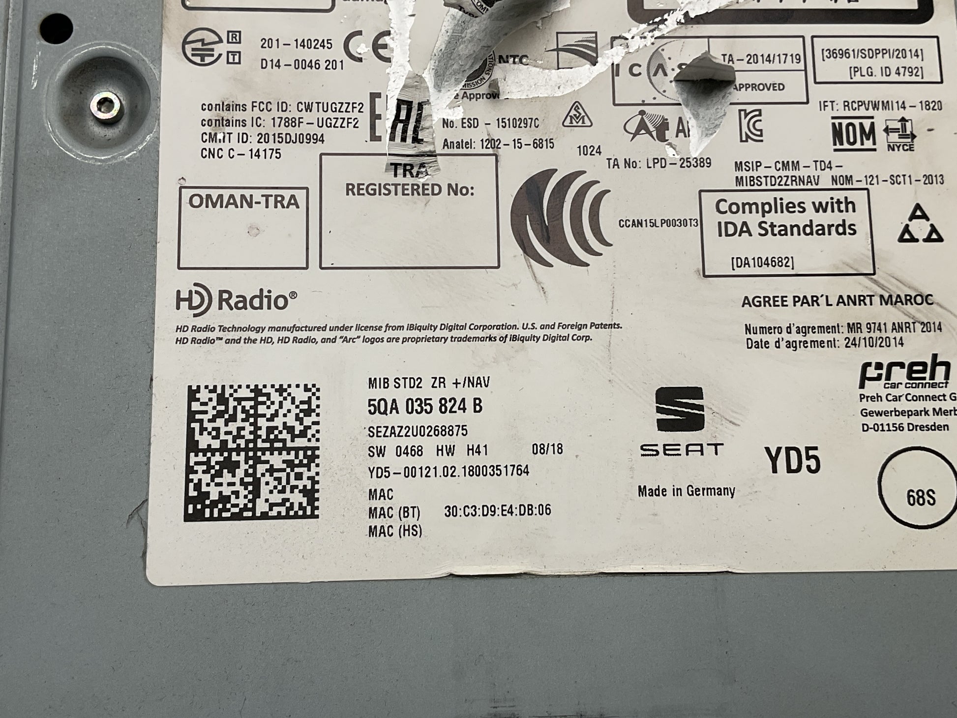 Referencia(s) OEM: 5QA035824B, 0468 HW H41, 2015DJ0994, 1788F-UGZZF2.