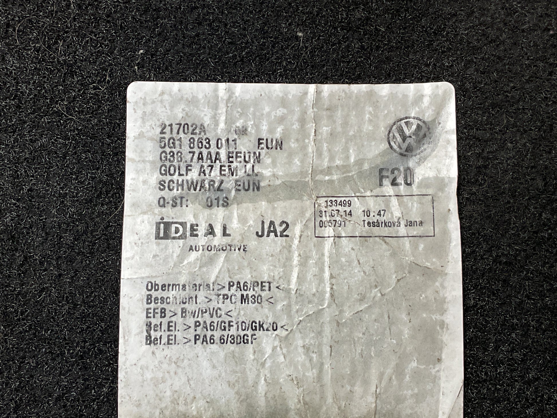 Alfombrilla izquierda interior para Volkswagen Golf VII
