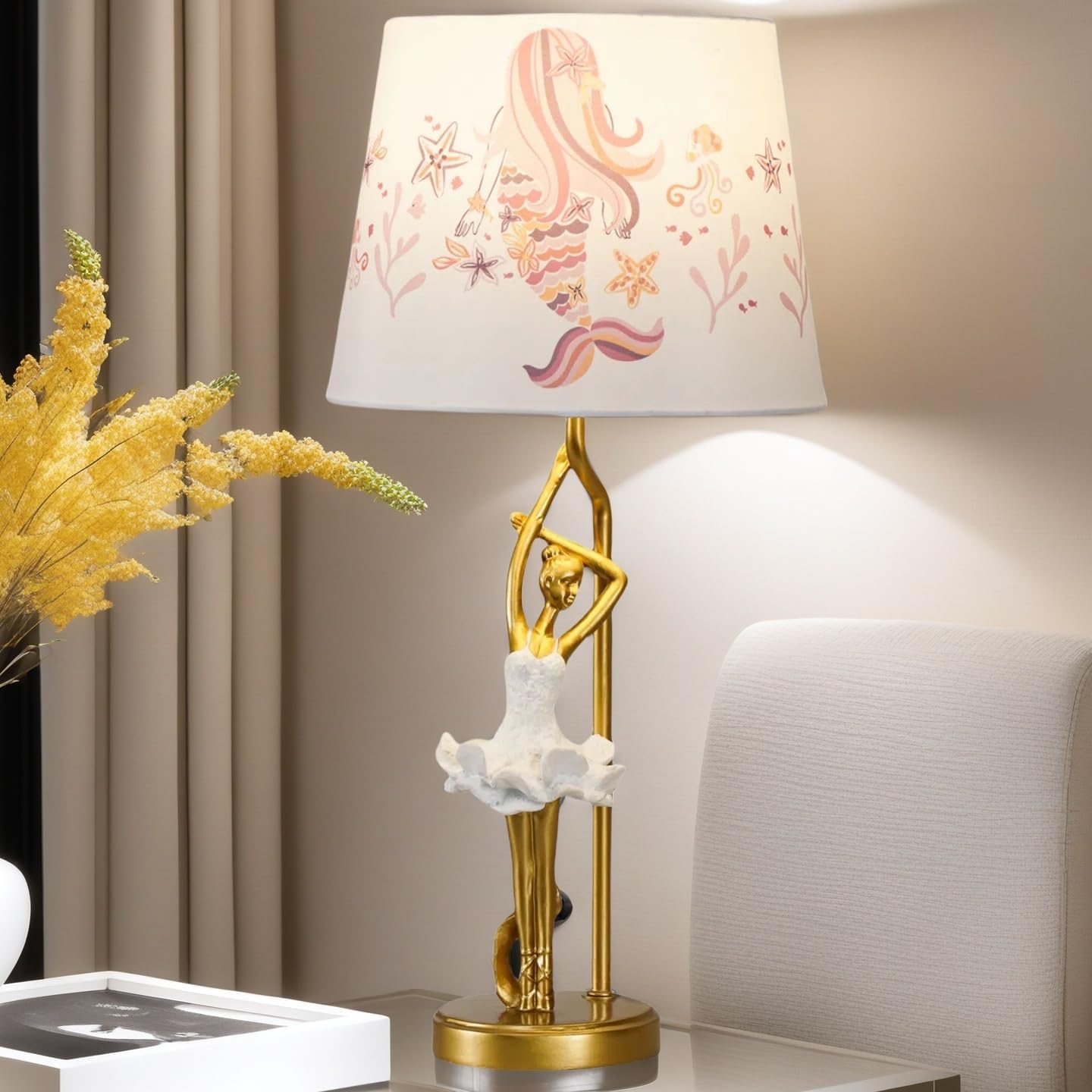 Haz que cada rincón brille con la gracia de una danza eterna. La Lámpara de Mesa Bailarina de SUPERHONGJIHAO es mucho más que una fuente de luz; es una pieza escultórica que captura la delicadeza del ballet. Con su combinación clásica de blanco puro y detalles en oro, esta lámpara de 19 pulgadas (48,3 cm) aporta un aire de sofisticación y fantasía a cualquier habitación.