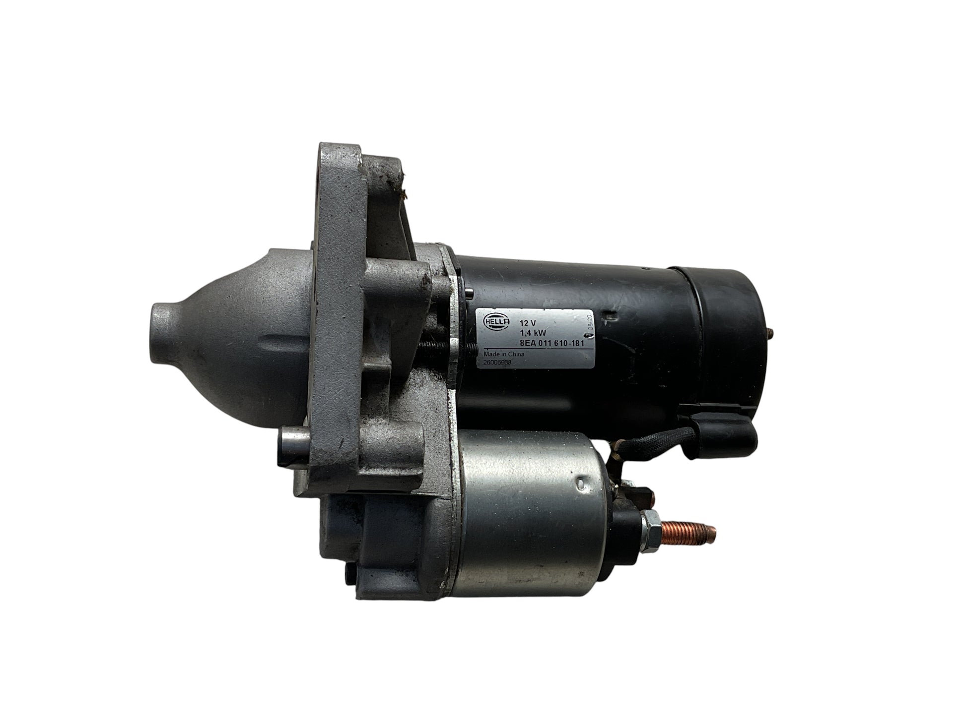 Motor de arranque 12V marca Hella. Encargado de poner en marcha el motor para: