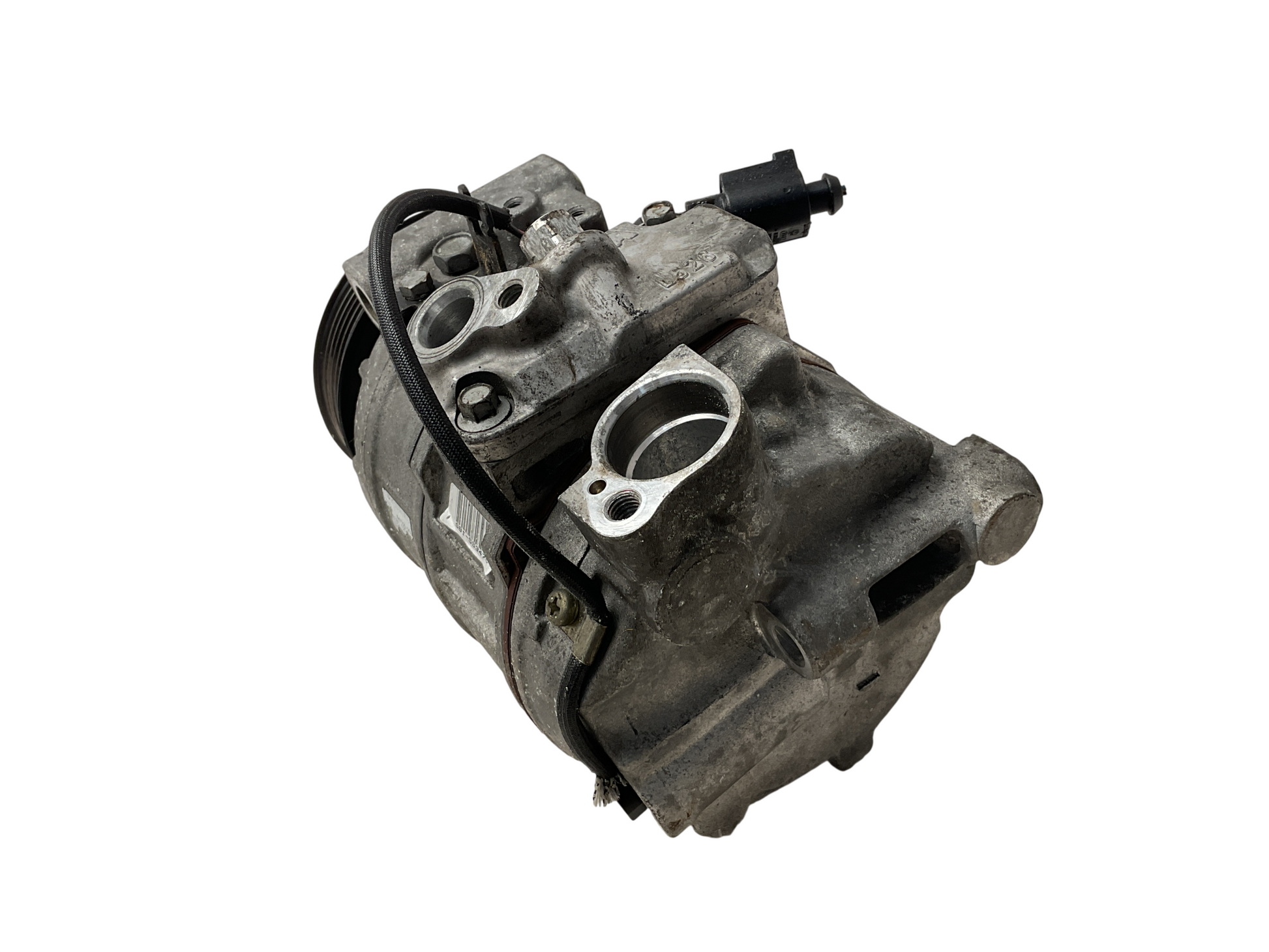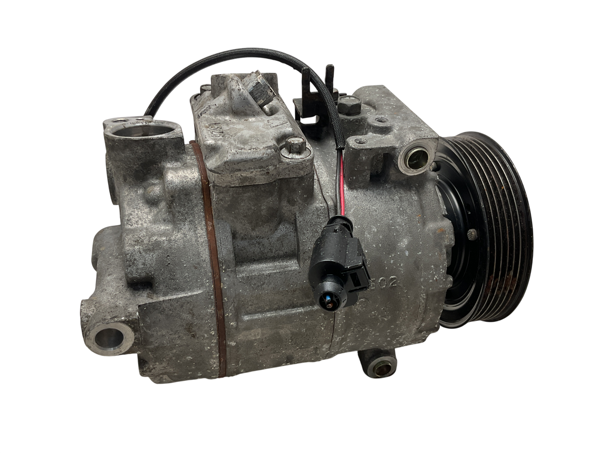 Compresor del sistema de climatización encargado de comprimir el refrigerante y permitir el funcionamiento del aire acondicionado.