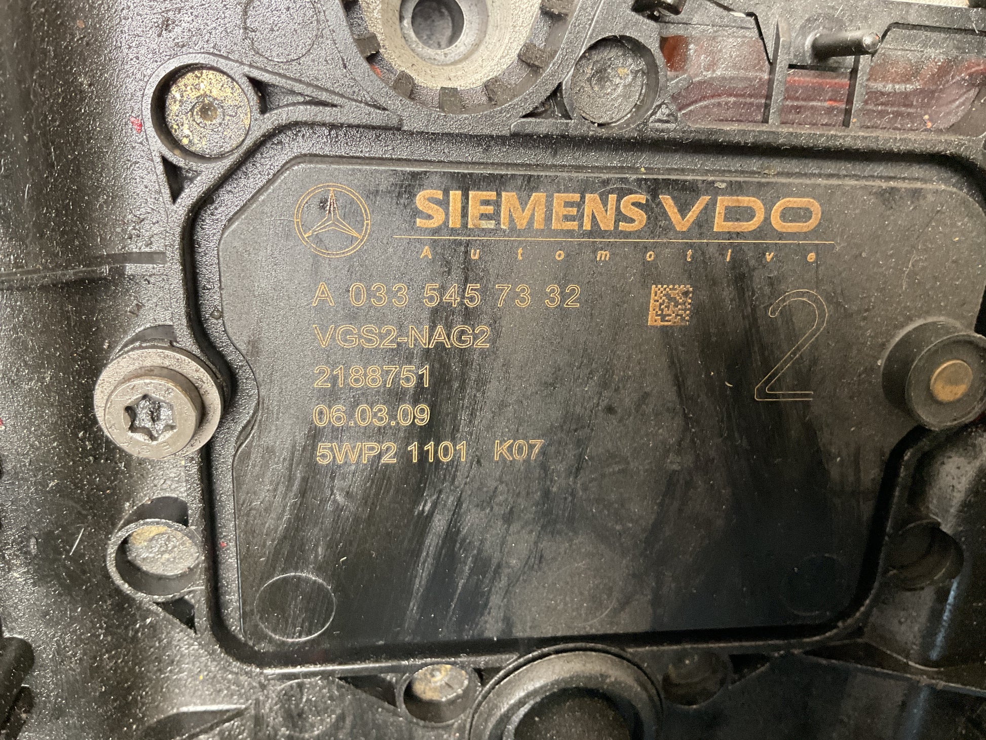 Módulo mecatrónico completo para transmisión automática 7G-Tronic 722.9. Controla cambios, presión hidráulica y solenoides.